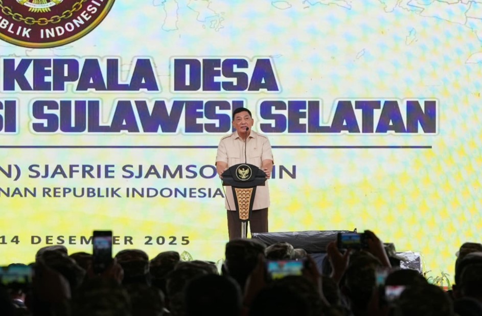 SUARAMANADO, Gowa: Menteri Pertahanan RI Sjafrie Sjamsoeddin menjadi pembicara dalam acara Jambore Kepala Desa Tingkat Provinsi Sulawesi Selatan, di Markas Komando Rindam XIV Hasanuddin, Kabupaten Gowa, Sulawesi Selatan, Minggu (14/12/2025)