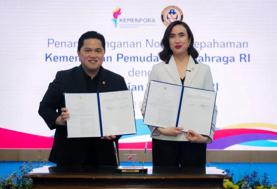 Penandatanganan MoU dilakukan oleh Menteri Pariwisata (Menpar) Widiyanti Putri Wardhana dan Menteri Pemuda dan Olahraga (Menpora) Erick Thohir di Auditorium Wisma Kemenpora, Jakarta, Senin (22/12/2025).