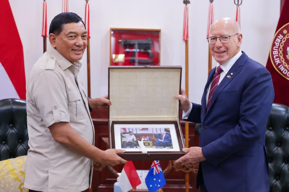 SUARAMANADO, Jakarta: Menteri Pertahanan Republik Indonesia (Menhan RI) Sjafrie Sjamsoeddin menerima kunjungan kehormatan mantan Gubernur Jenderal Australia, H.E. General (Retd.) David John Hurley, di kantor Kementerian Pertahanan (Kemhan), Jakarta, Rabu (29/10/2025). Kunjungan tersebut menjadi simbol silaturahmi dan persahabatan yang telah terjalin lama antara Indonesia dan Australia, khususnya di bidang pertahanan.