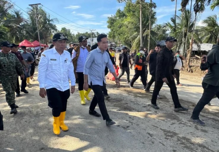 SUARAMANADO, Pidie Jaya: Wakil Presiden (Wapres) Gibran Rakabuming menyapa langsung para pengungsi terdampak bencana saat mengunjungi Posko Pengungsian di Masjid At Taqwa, Meunasah Balek, Kabupaten Pidie Jaya, Provinsi Aceh, Rabu (17/12/2025). Kunjungan ini dilakukan usai Wapres menuntaskan rangkaian peninjauan wilayah terdampak bencana di Kabupaten Gayo Lues.