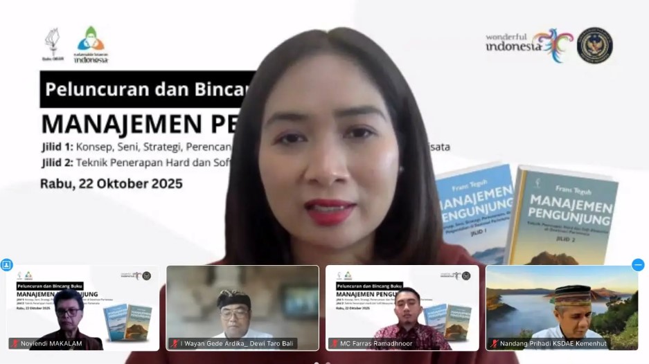 Wakil Menteri Pariwisata (Wamenpar) Ni Luh Puspa dalam dalam closing statement acara peluncuran dan bincang buku yang digelar secara daring, Rabu (22/10/2025), mengatakan karya tersebut berperan strategis dalam memperkuat kapasitas pengelolaan destinasi, terutama pada aspek keseimbangan antara daya dukung lingkungan, pengalaman pengunjung, serta keberlanjutan sosial ekonomi masyarakat lokal.