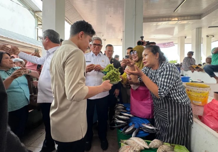 Sambil menyusuri lorong-lorong pasar, Wapres berbincang dengan para pedagang, menanyakan harga bahan pokok, hingga membeli dagangan mereka. Interaksi hangat dan canda ringan yang terjalin mencerminkan bahwa pasar bukan sekadar tempat transaksi ekonomi, tetapi juga ruang kebersamaan dan kehidupan sosial masyarakat.